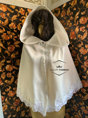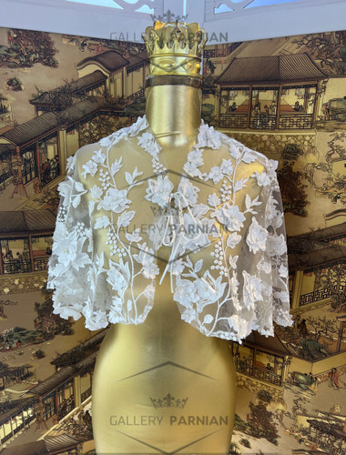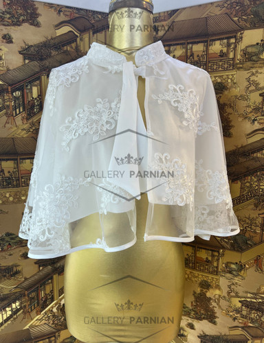 مزایا: مناسب برای همه فصول: میتوانید این کت و شنل زیبا را برای هر فصل و نوع مراسمی انتخاب کنید. سازگاری با سایر لباسها: این کت و شنل به راحتی با سایر لباسهای عروس و اکسسوریها ست میشود.