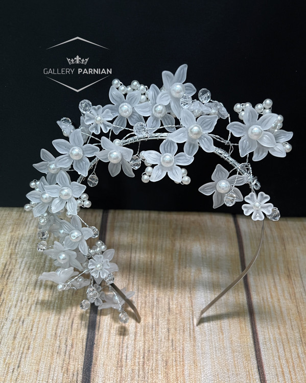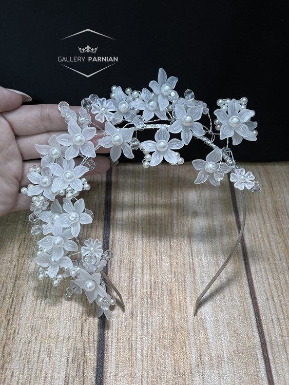 تل عروس کار شده با مروارید شکوفه و کریستال شیک مناسب مراسم های شما