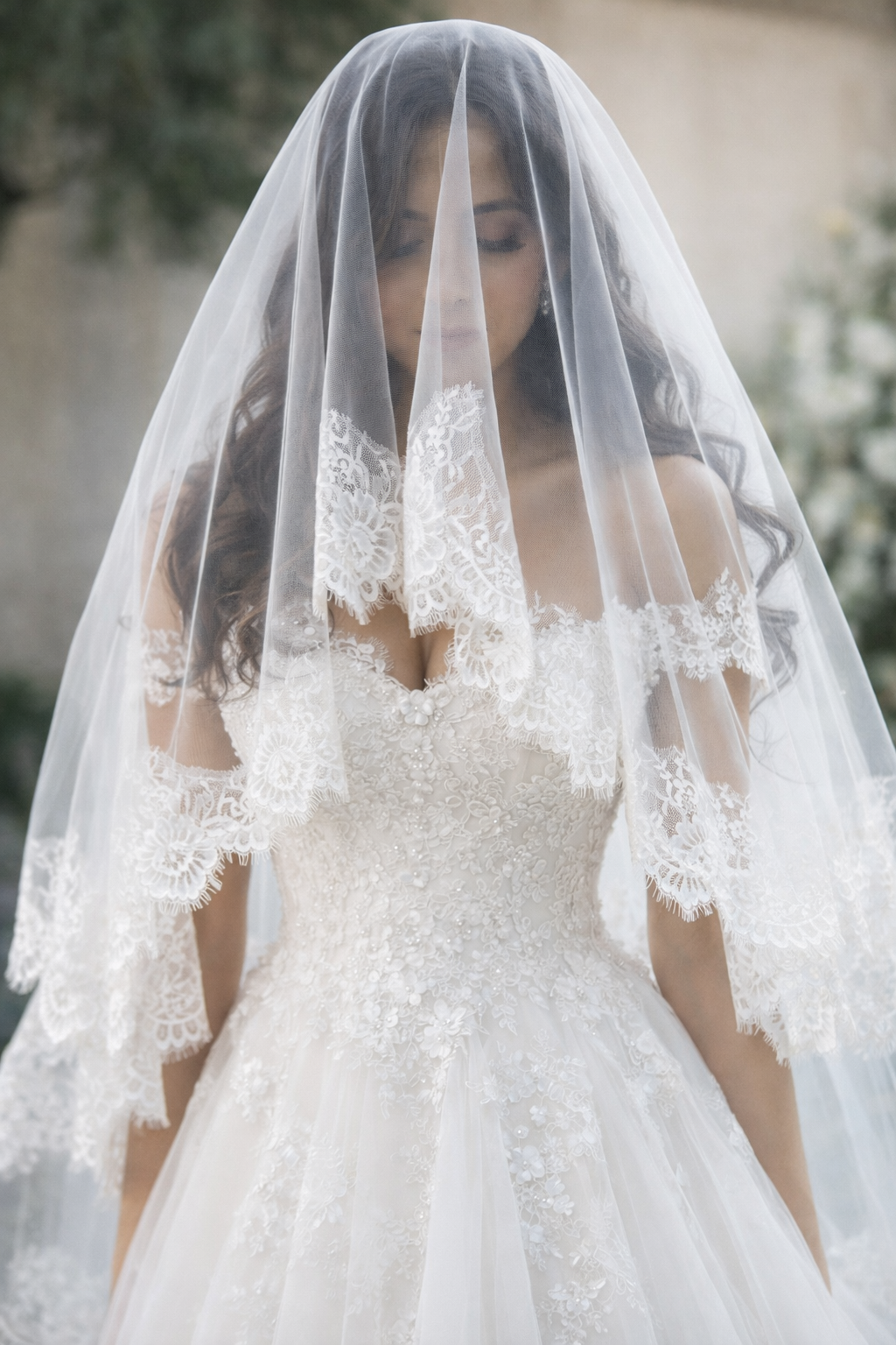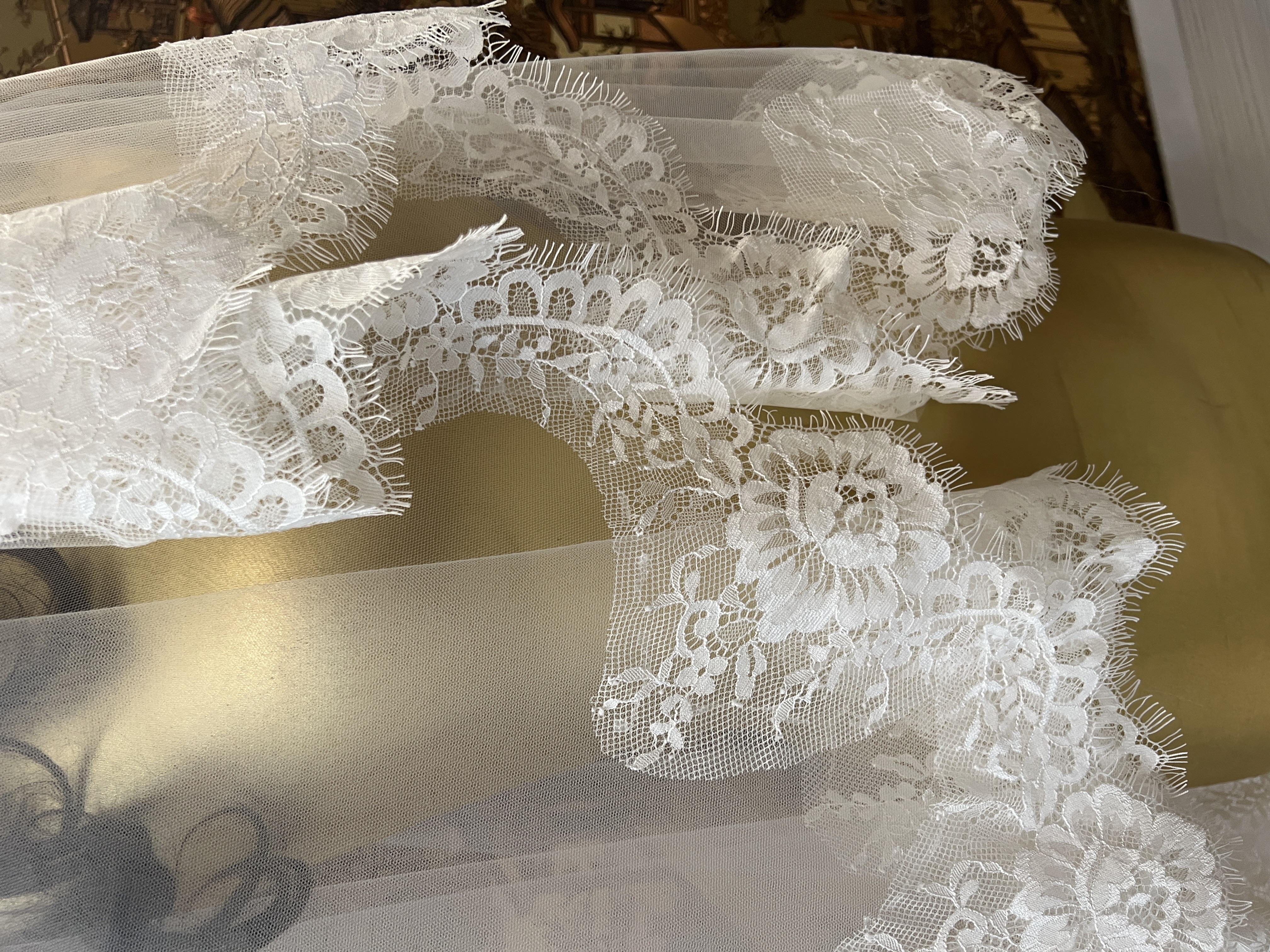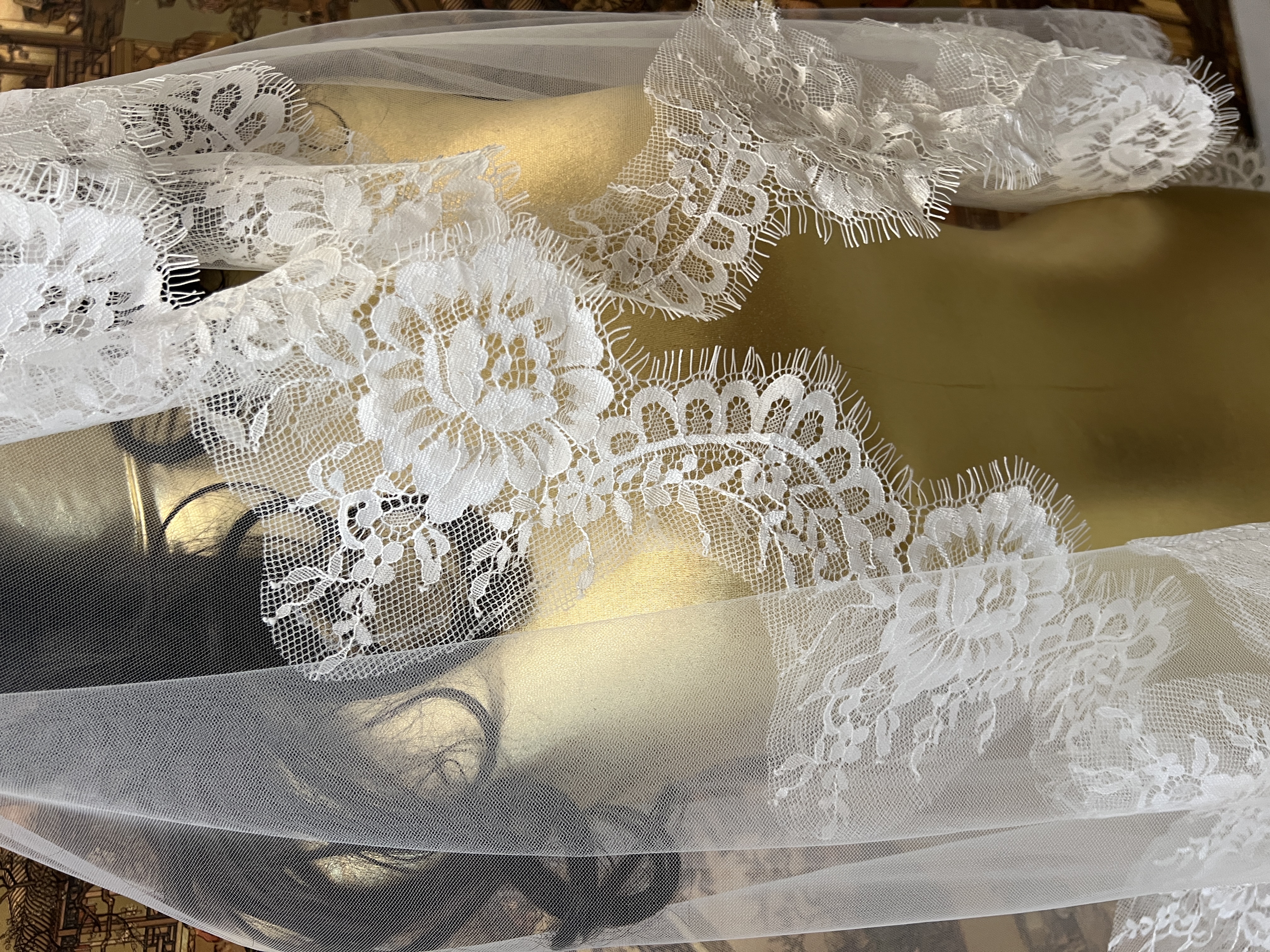 تور عروس ساده و شیک حاشیه مژه ای باعث زیبایی خیره کننده در عکاسی عمارت و اتلیه ارتفاع حدود1/5 شیک طراحی ۲۰۲۶ از مدل های جدید کالکشن