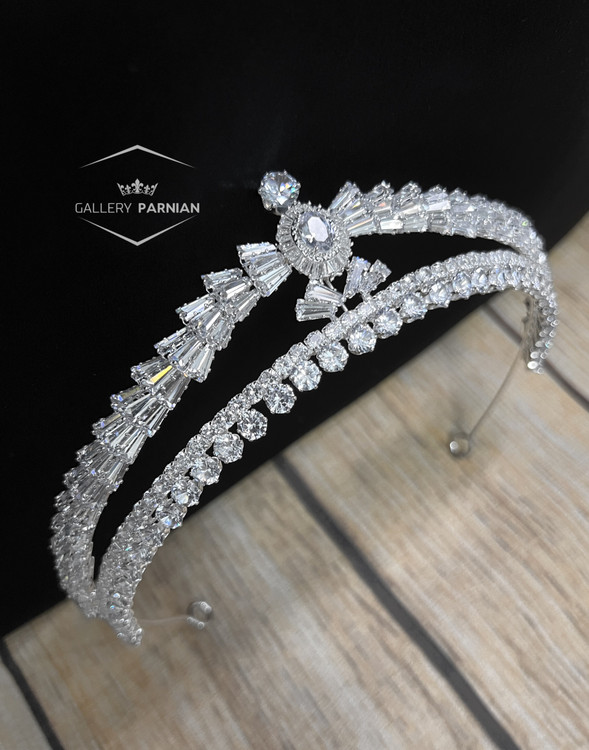 تاج عروس دو طرفه از مدل های وارداتی طراحی ۲۰۲۵ هستش که سبکی مدرن و خاص داره این تاج از سنگ های زیرکنویوم و جنس بدنه بسیار خاص با رنگ ثابت همیشگی داره که البته با ضمانت کارخانه است